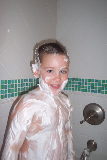 Its a tradition that each time we spend the night at my sisters house that she and Preston bring out the shaving cream for bathtime. He calls himself Shaving Cream Man and his superhero powers is shaving cream....duh. Im not sure which one of them gets a bigger laugh out of it but each year it takes more and more shaving cream. Yes, Yes I do intend to use these pictures someday against my son because thats the type of mom I am...your welcome son.